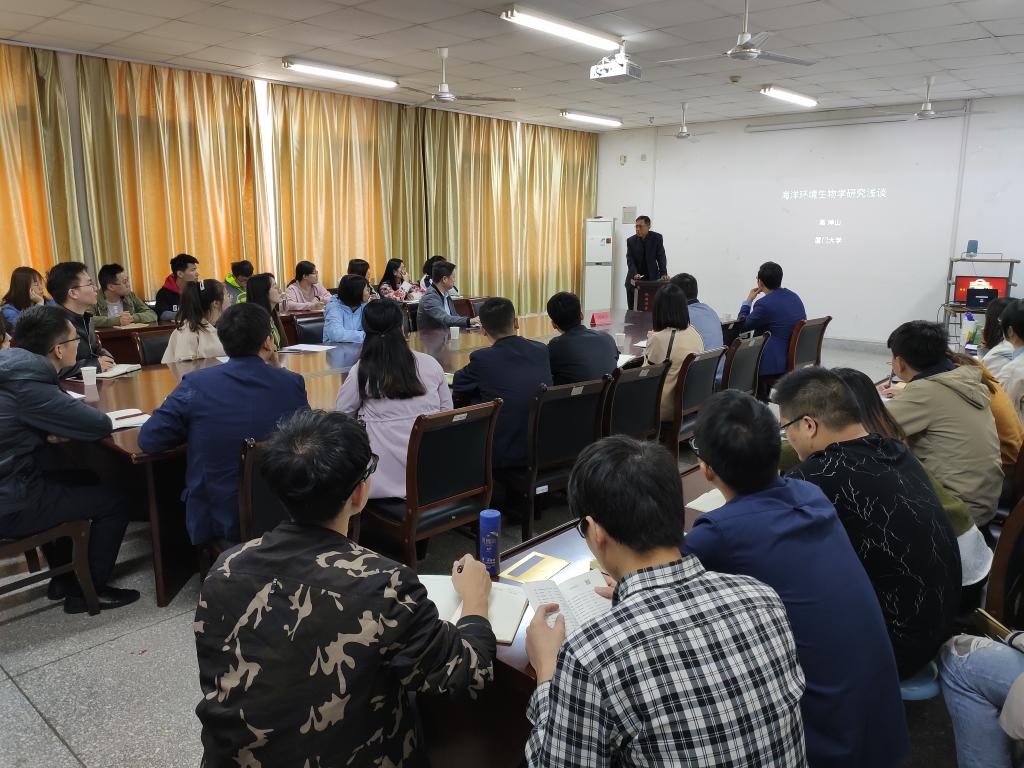 10月14日,厦门大学近海海洋环境科学国家重点实验室首席科学家高坤山教授应邀到我校进行学术交流,在海洋南楼202会议室,高教授作了题为《海洋环境生物学研究浅谈》的学术报告。报告会由海洋生命与水产学院副院长董志国主持,海洋生命与水产学院、重点实验室60余名师生参加了报告会。