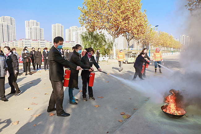 演练开始前,保卫处处长马超做了发言,他强调在我们的各项工作中一定要贯彻落实习近平总书记对安全生产工作的重要指示,要贯彻落实今年校党委部署的八大重点工作以及关于实验室、教室和宿舍等场所的安全管理规定。随后,消防科科长魏灵钢老师详细地讲解了灭火器的使用方法、使用中的注意事项以及干粉灭火器适用的火灾范围。在示范演示之后,参加人员分成两队,有序、认真的进行灭火演练。实验室的老师们依次上前,亲手操作,熊熊大火瞬间被灭火器喷射出的干粉扑灭。