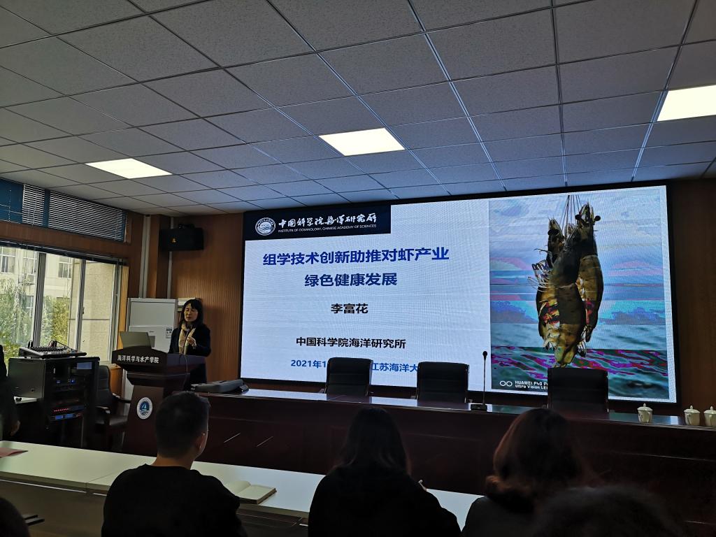 10月21日下午,中国科学院海洋研究所李富花研究员应邀到海洋科学与水产学院交流,并作题为“组学技术创新助推对虾产业绿色健康发展”的学术报告。报告会由副院长高焕主持,50余名师生参加了报告会。